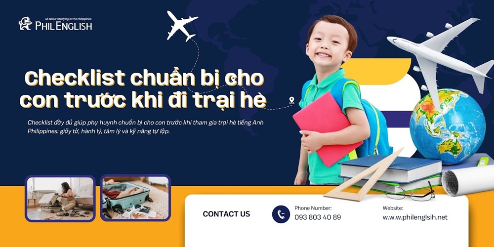 Checklist đầy đủ giúp phụ huynh chuẩn bị cho con trước khi tham gia trại hè tiếng Anh Philippines: giấy tờ, hành lý, tâm lý và kỹ năng tự lập.
